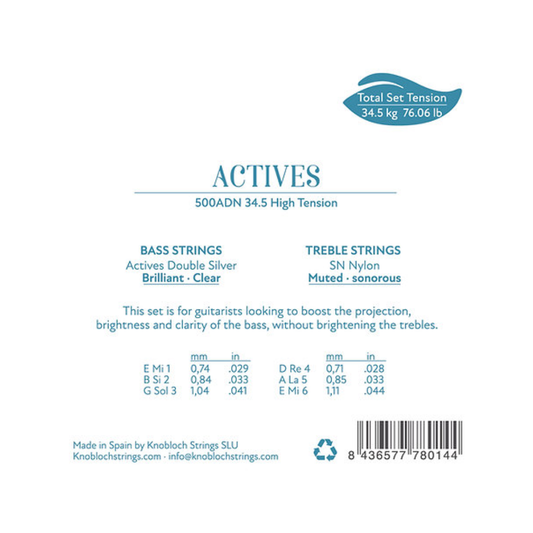 Cuerdas de Guitarra Clásica Knobloch Actives SN Nylon Double Silver 500ADN Tensión Alta
