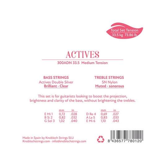 Cuerdas de Guitarra Clásica Knobloch Actives SN Nylon Double Silver 300ADN Tensión Media