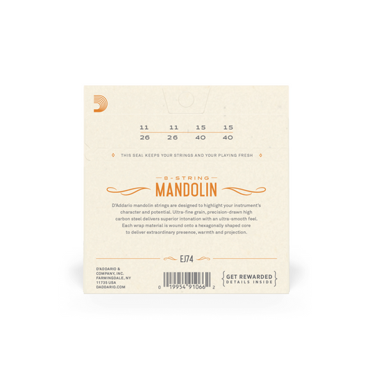 Cuerdas para Mandolina de 8 Cuerdas Daddario EJ74 Tensión Media Phosphor Bronze